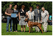 Am 5.8.2007 wurde Bomani im Rahmen der ELSA-Clubschau mit dem Carl-Ludwig von Geibler-Wanderpreis für den besten in Deutschland gezüchteten Rüden ausgezeichnet, gestiftet von Christa von Stetten. Foto: M. Pehr |