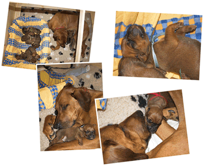 9. Juni 2005: Ich bin glücklich, heute 12 putzmuntere, gesunde Welpen zur Welt