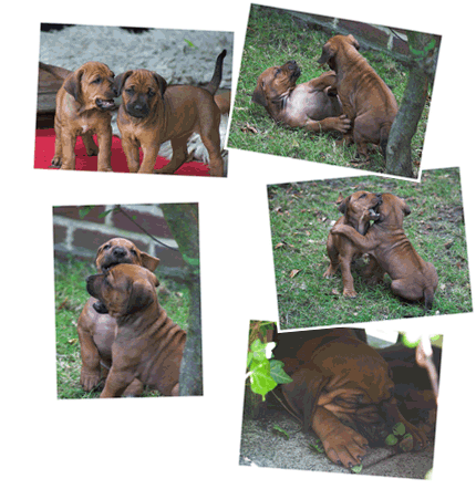 Sie fallen mit großer Freude über die Besucher her, die staunend die Fortschritte in Größe, Beweglichkeit und Spieleifer wahrnehmen, aber gelegentlich auch zu spüren bekommen, wie spitz die Milchzähnchen sind.